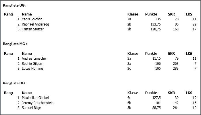 SKR (Schweizer Kategorien Rang): Welchen Rang hätte die Schülerin oder der Schüler unter allen Teilnehmenden in der Schweiz erreicht.