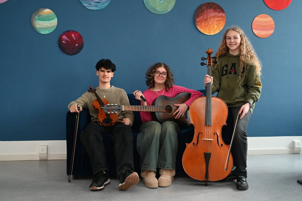 v.l.n.r. Johanna Raig, Walchwil (Cello, Gesang); Melina Kurzen, Küssnacht am Rigi (Klavier, Gesang, Gitarre); Luca Villanueva (Violine, Gesang)